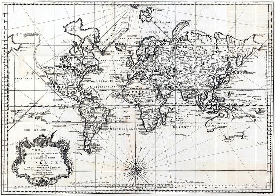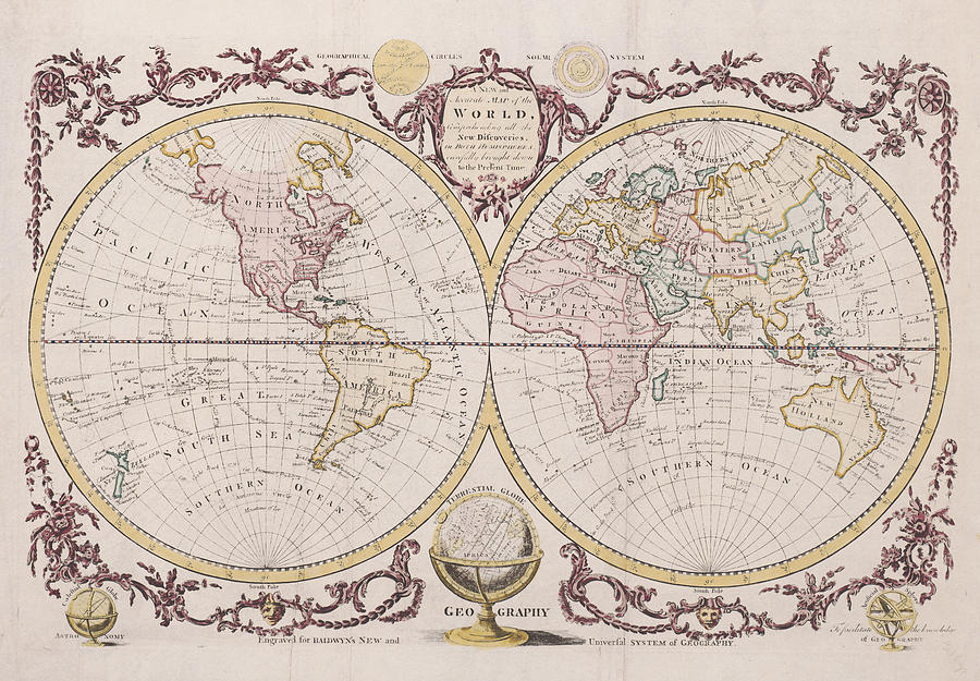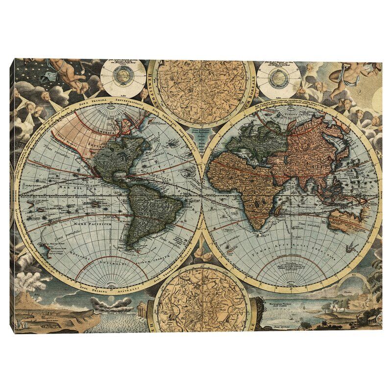Фотокартина на холсте Старинная карта мира винтажная карта континентов 60х40