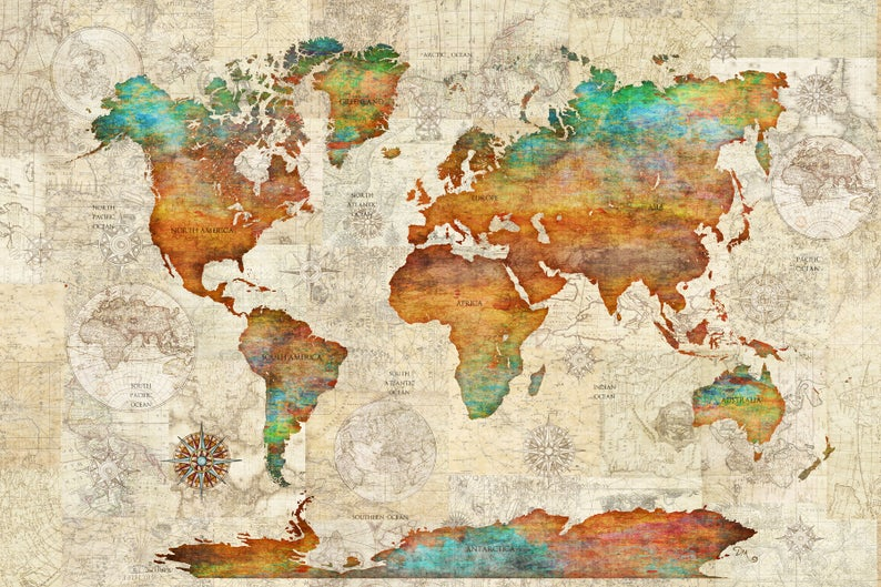 Флизелиновые фотообои ретро Винтажная карта мира (13849V)