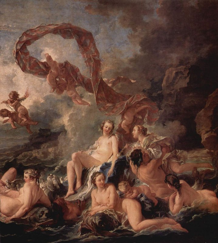 А вот опять Диана, обнаженная и прекрасная, она отдыхает на берегу живописного ручья после утомительной охоты. Или Венера, совершающая свой вечерний туалет. Пышная богиня с фарфоровой кожей внешне напоминает жеманную и игривую придворную даму, окруженную воздыхателями.