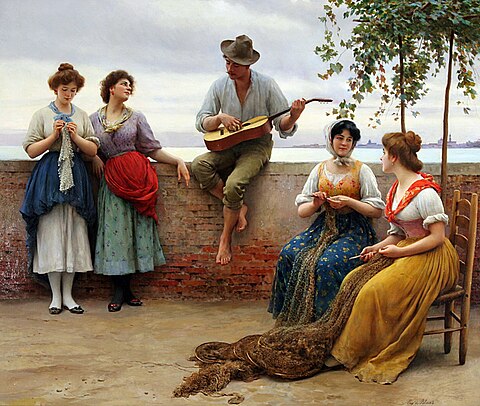 Эжена де Блааса всегда привлекали жанровые сцены, истории из жизни простых венецианцев.
