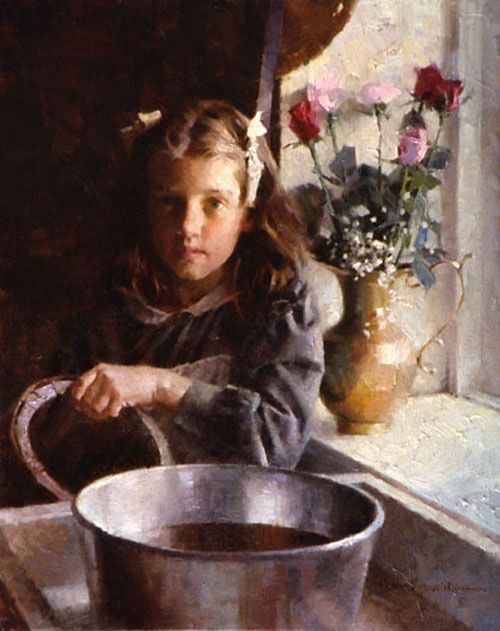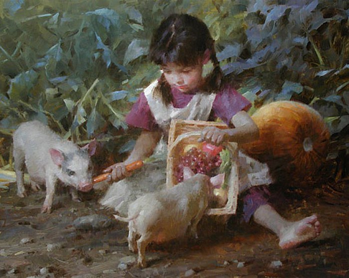 Несколько дней назад, бродя по просторам интернета, мне попалась на глаза удивительная картина Моргана Вейстлинга. Маленький мальчик, весь перемазанный кашей, наивно и вопросительно сморел прямо в душу. Трогательный малыш напомнил мне собственного внука Макара, когда он в таком же возрасте аппетитно уплетал овсянку, севершенно не заботясь об аккуратности 🙂 И конечно же, мне захотелось детальнее познакомится с творчеством такого замечательного художника.
