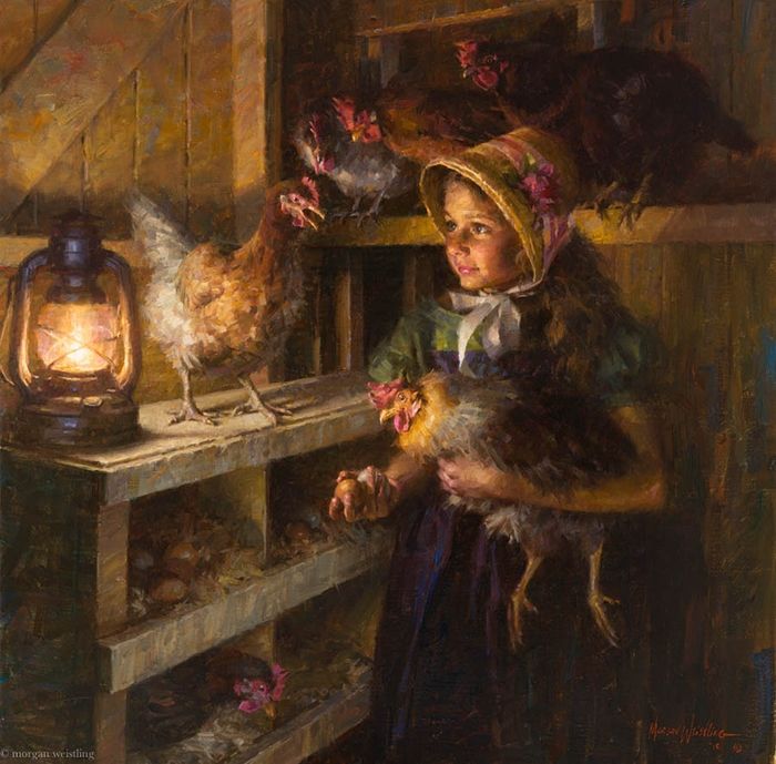 И вот, что я узнала. Morgan Weistling — известный современный американский живописец родился в 1964 году, в семье художников. С ранних лет он жил среди мольбертов и красок, и первые, самые важные книги по искусству из обширной семейной библиотеки он читал, сидя ещё на коленях отца. Любовь к искусству, воспитанная отцом в раннем возрасте, привели Моргана к твердому решению самостоятельно изучить курс живописи по книгам.