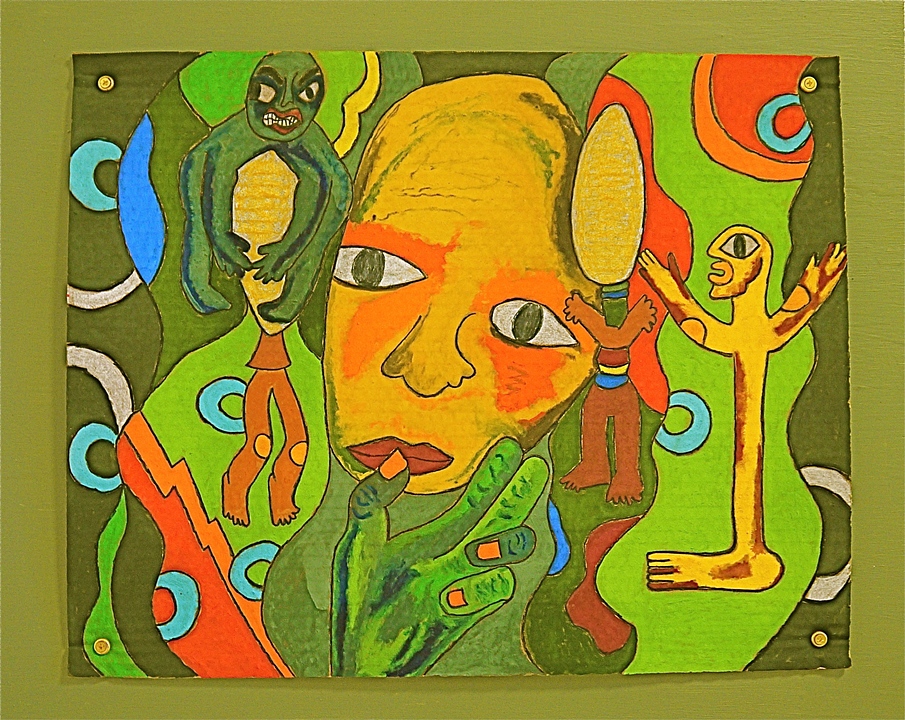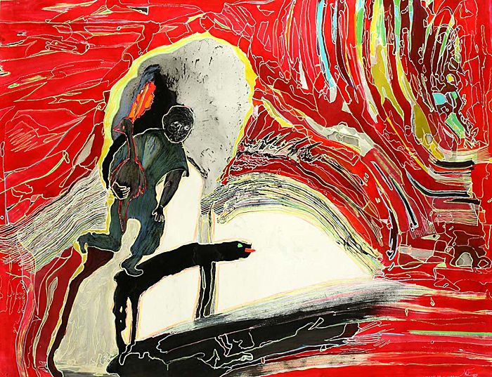 - Использование изменчивости физических свойств красок для подчеркивания изображенного переживания. Интуитивное применение различных материалов выражало творческую силу бессознательного в виде психической импровизации.