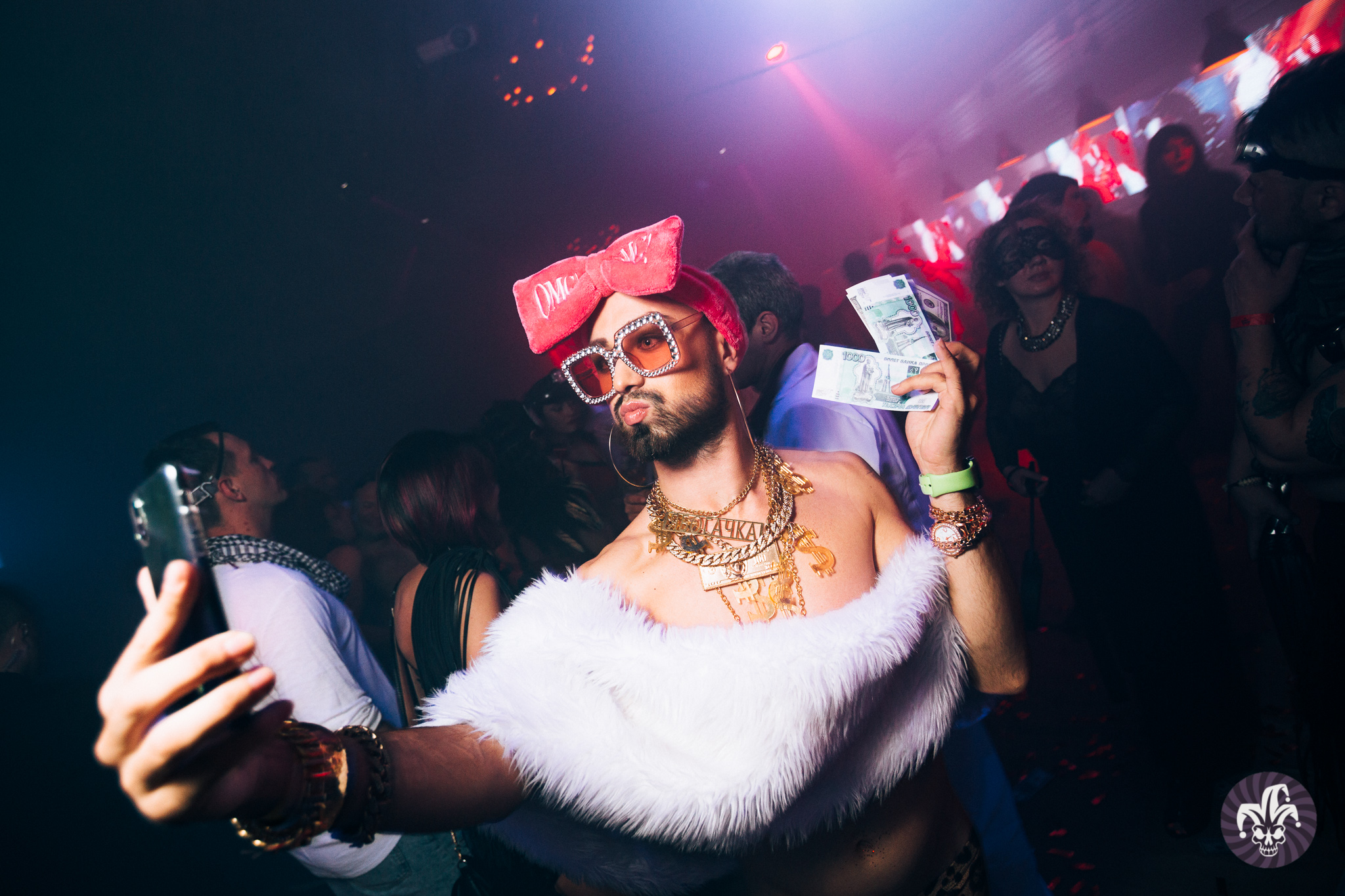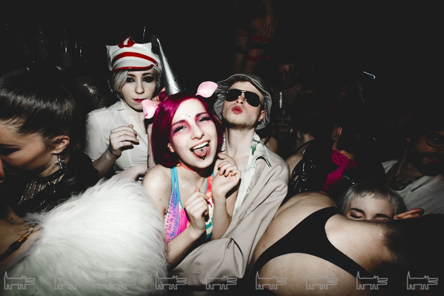 Мои фавориты вечера — мужчина в розовом парике и боди, напоминающем костюм горничной, девушка в прозрачном дождевике, под которым ничего не было, девушка с наклейками на соски в форме розовых мишек и какой-то пачке.