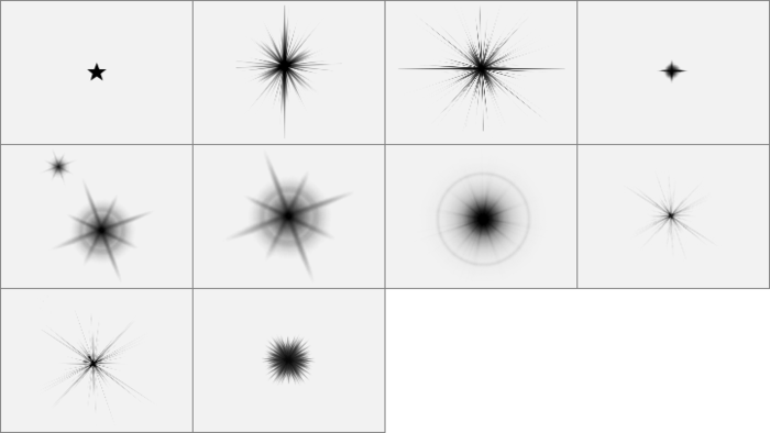 В этот набор входят 10 кистей с солнечными лучами высокого разрешения.