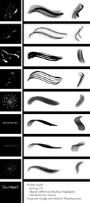 Программа фотошоп, все в том же меню задач, предлагает к использованию еще такие наборы: Разные, Основные, Каллиграфические, DP, для создания теней, Сухие, Финишные, Природные, Круглые, Кисти специальных эффектов, Квадратные широкие, Мокрые.
