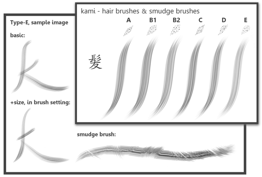 Слева можете глянуть мазок. Что-то такое должно у вас получится. Вы сначала рисуйте сплошным черным (ну или любым другим цветом), затем создайте второй слой, настройте слой на эффект «Добавить» и на этом же слое на пониженной прозрачности (5-10) и более светлым тоном кисти прорисовывайте более светлые волоски. Но перед этим не забудьте использовать Стабилизатор. Его вы найдете вот здесь: К сожалению, это изображение не соответствует нашим правилам.