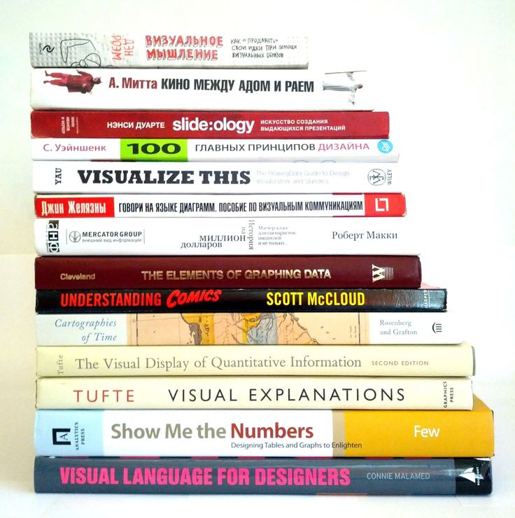 Но книги, безусловно, вносят свой вклад в развитие, а хорошие книги могут очень помочь в изучении какой-то области. Поэтому ниже я приведу 10 наиболее качественных книг, которые я лично прочитал, а также всегда советую читать и перечитывать всем, кто хочет научиться создавать инфографику и визуализацию данных.