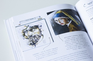 Книга также охватывает широкий спектр материалов, таких как графит, уголь, уголь, цветные карандаши и даже акварель.