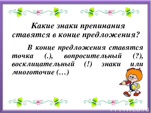 Примечание: В этом примере за конечным знаком препинания следуют три точки с многоточием.