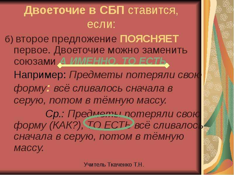 | Второе предложение поясняет первое (+ если в первой части употреблены слова | то есть, а именно