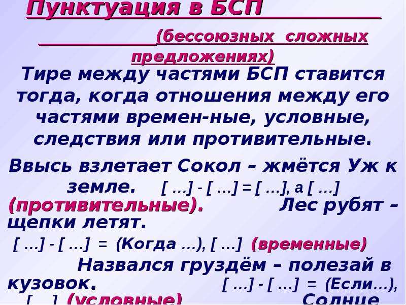 Знаки препинания в бессоюзных предложениях: запятая, тире, двоеточие, точка с запятой