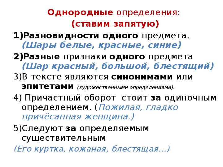 Примечание 1. Два или несколько прилагательных, согласованных с одним и тем же существительным и не соединенных между собой посредством союзов, являются однородными только в том случае, когда каждое из них непосредственно относится к этому существительному, например:
