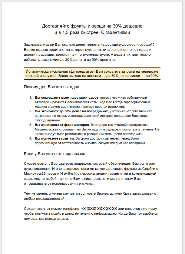 Итого, структура коммерческого предложения для холодных клиентов на товар состоит из следующих блоков:
