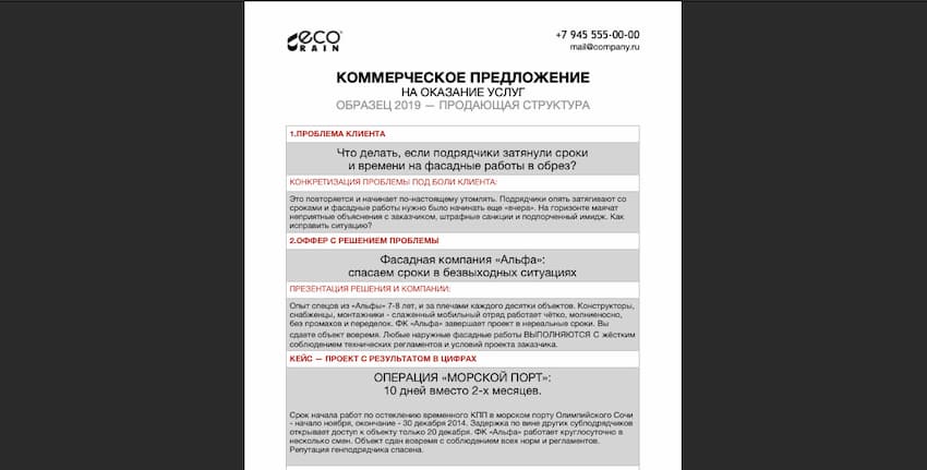 Рассмотрим, из каких блоков состоит продающее КП на услугу.
