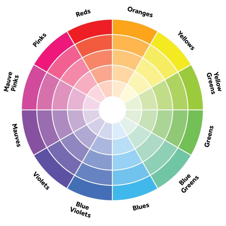 Цветовой круг можно делить бесконечное количество раз, чтобы включить все градиенты между этими основными оттенками.