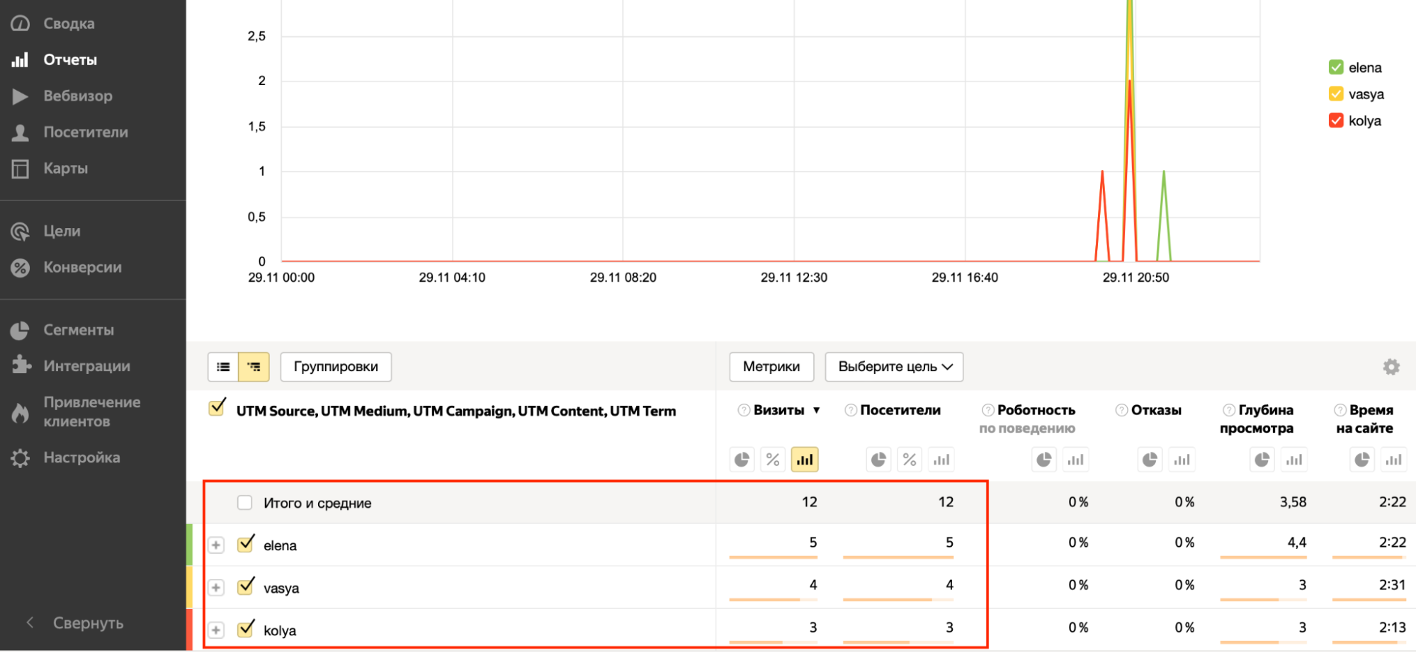 Полученную информацию об источниках переходов вы можете проанализировать в системах аналитики, например, Calltouch, Яндекс.Метрике и Google Analytics. Скрипты считывают переходы с размеченных ссылок и присваивают сессии источник трафика. Поэтому на сайте должен быть счетчик.