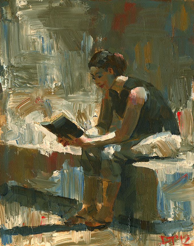 Сначала я определил, как на самом деле будет выглядеть главная фигура. В идеале мне стоило найти человека, который бы позировал для меня, и нарисовал бы его после того, как он сядет и примет правильную позу для композиции. Я бы тщательно нарисовал модель с натуры. Если бы это было невозможно, я бы работал с моими ранее сделанными рисунками или использовал фотографию.