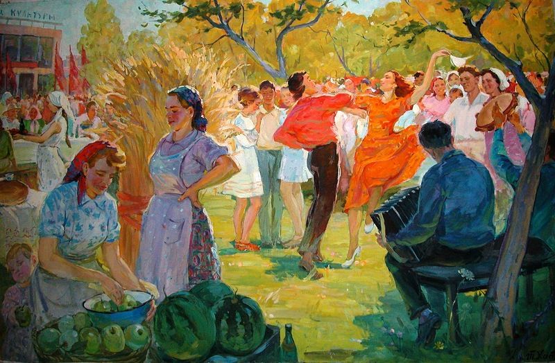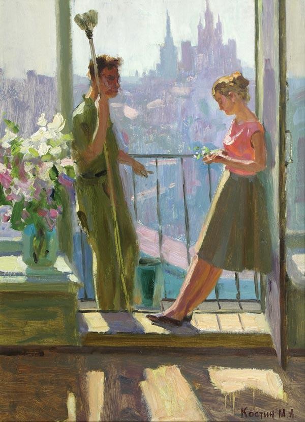 Совсем по-другому подходит к решению темы борьбы «старого и нового» Ю. И. Пименов. В «Свадьбе на завтрашней улице» мы видим, как преображается жизнь города и людей, как новое стремительно шагает на смену старому. Лактионова и Пименова разделяют не столько индивидуальный живописный почерк, сколько метод эстетического освоения действительности и, разумеется, разность мировосприятия, мышления.