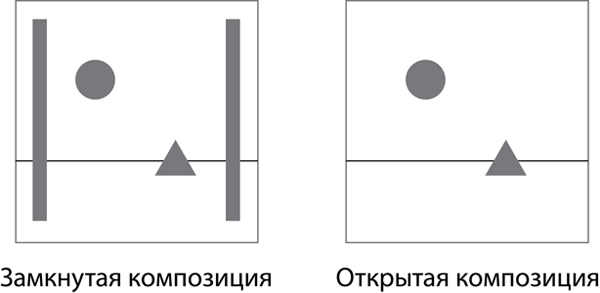 В замкнутой композиции основные направления линий стремятся к центру. Такая композиция подойдет для передачи чего-то устойчивого, неподвижного.