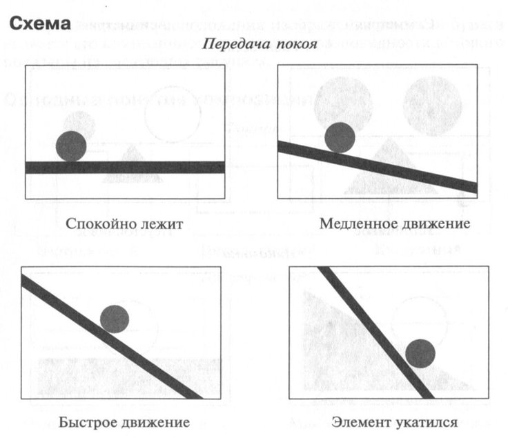На картинке справа создается иллюзия движения. Почему? Потому что мы прекрасно знаем из своего опыта, что будет с круглым предметом, если наклонить поверхность, на которой он находится. И воспринимаем этот предмет даже на картинке движущимся.