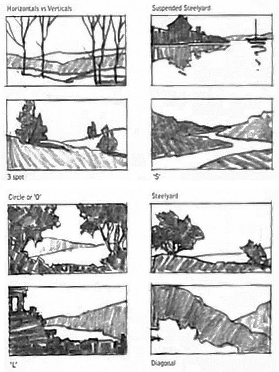 Сбалансируйте его с меньшей подчиненной формой, а затем сбалансируйте ее с еще меньшей подчиненной формой. Подчиненная форма часто (но не всегда) является фокусом картины.Статическая композиция – основная линия движения горизонтальная или вертикальная