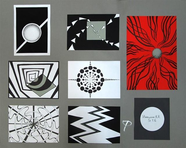 Радиальные композиции с явным спицеобразным дизайном привлекают слишком быстрый взгляд. Все линии должны быть ломаными, неровными или перехваченными.