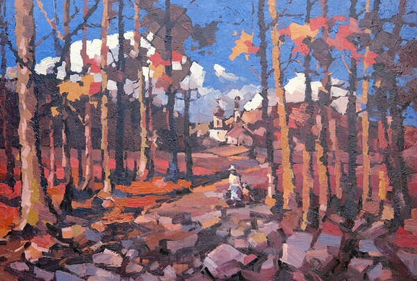 Полное единство зависит от баланса в трех измерениях. Баланс расстояния — это вопрос создания художественного неравенства между основными темными и светлыми участками. Когда цвета переднего плана изменяются и повторяются в более светлых и серых тонах на расстоянии, их повторение всегда помогает сбалансировать композицию