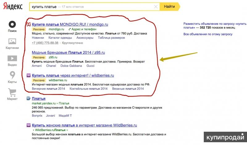 ru и других. Объявление будет показано только тем пользователям, которые ввели запрос, связанный с информацией или товарами компании. Для рекламных объявлений такого типа работает модель PPC («pay per click», оплата за клик). То есть рекламодатель платит площадке, с помощью которой размещена реклама, только когда пользователь кликает на объявление.