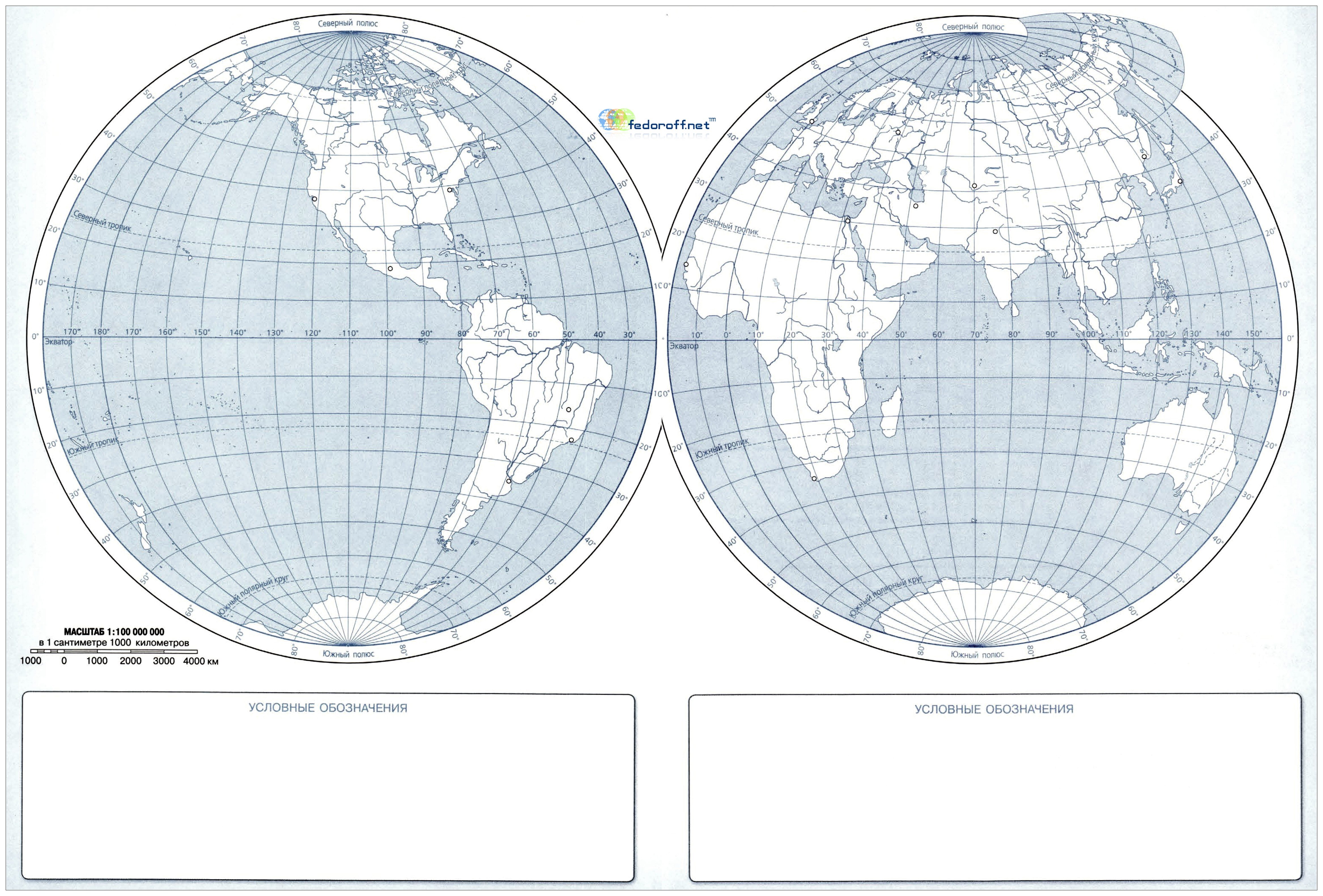 • Для работы на контурной карте целесообразно