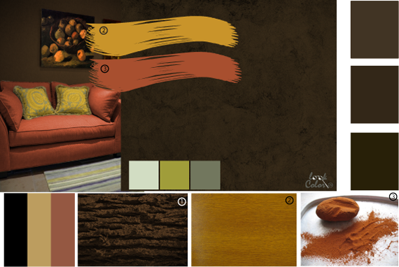 Если хочется воплотить дизайн, располагающий к спокойствию, расслаблению и приятному отдыху в кругу близких людей и друзей, то подобная гамма вписывается в вышеописанное идеально. Она ассоциируется с природными натуральными материалами. Палитра отлично смотрится с оранжевым и зеленым. Она делает их более сочными, не перегружает, уравновешивая яркость. Гамма земли и древесины вносит в помещение тепло и умиротворение. Поэтому является подходящим вариантом для обустройства дома, в частности гостиной и спальни.