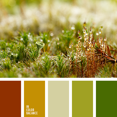 Коричнево-зеленый цвет относится к болотным тонам. Сочетания с ним ненавязчивое, успокаивающее, которые применяется в одежде и интерьере.