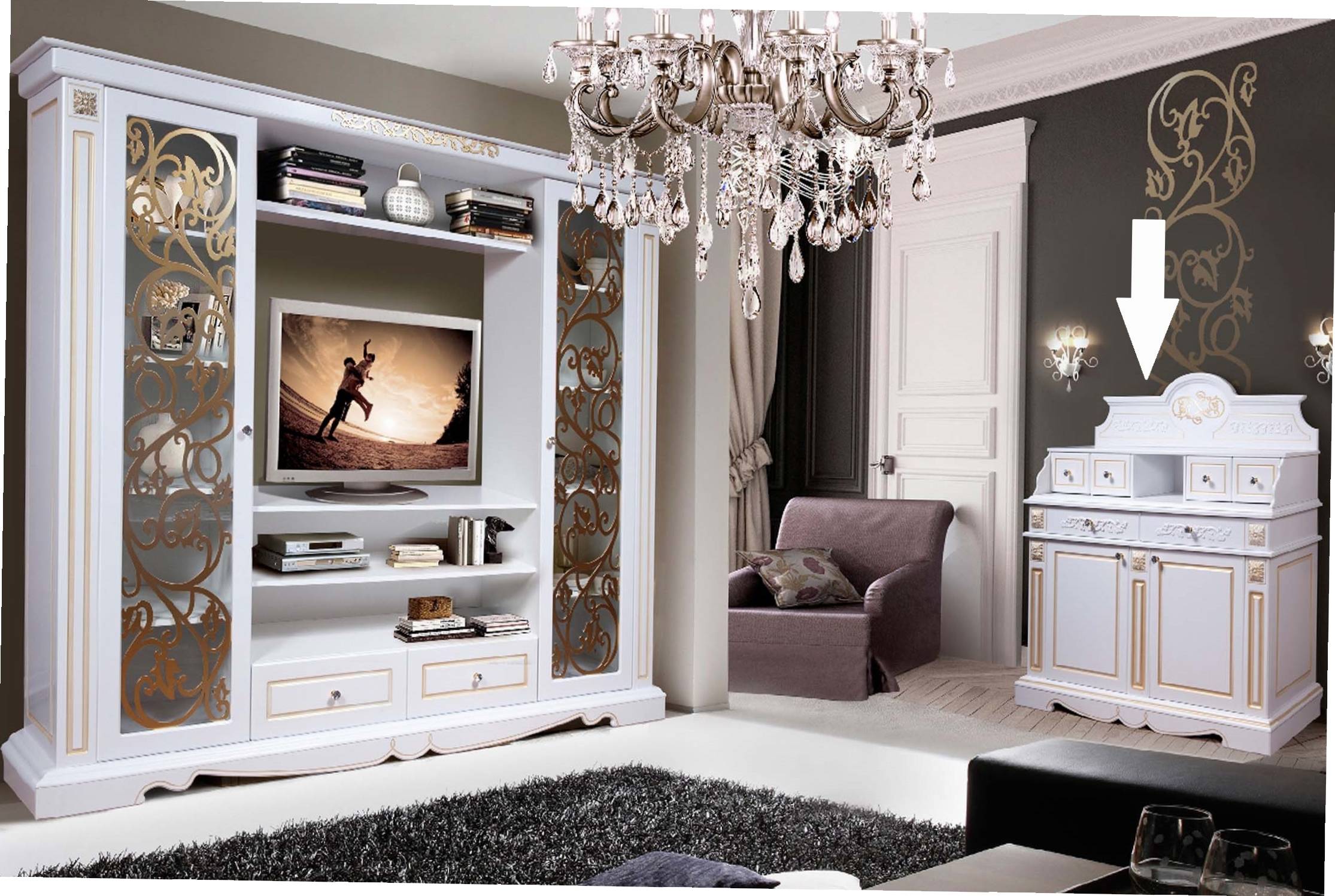 Чаще всего декор используют для корпусной мебели: шкафы, тумбочки, стеллажи.