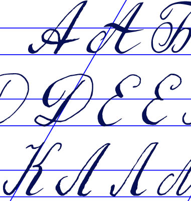 Узким пером можно писать вертикальные черточки и линии, широким пером — боковые части букв.