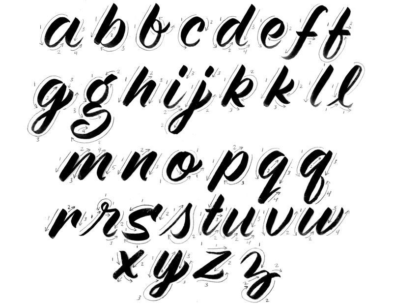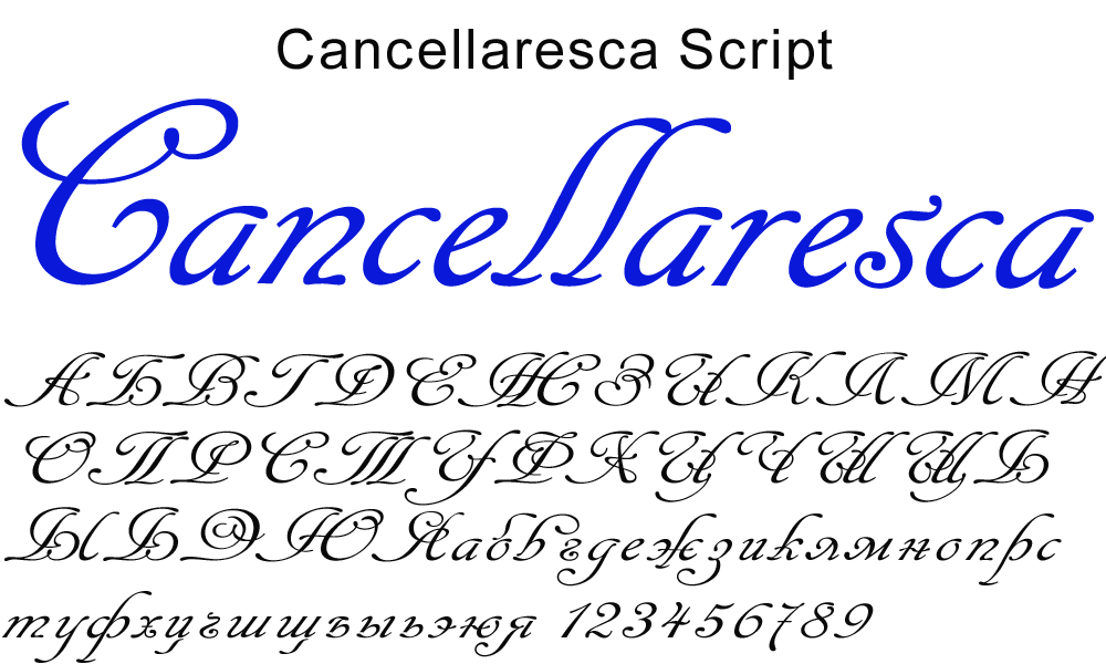 Первые курсивные шрифты были самыми простыми. Они были разработаны как однозначные семейства и содержали только символы нижнего регистра: без заглавных букв, без цифр и без знаков препинания. Идея заключалась в том, чтобы использовать заглавные буквы и другие символы по мере необходимости из любого шрифта, доступного принтеру. Только в 17 веке курсив стал законной частью семейства шрифтов, а наклонные заглавные буквы и цифры были созданы как часть предложения.