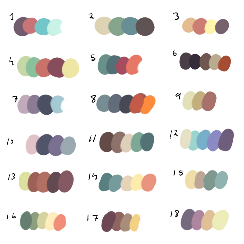 - Темно-фиолетовый: золотисто-коричневый, бледно-желтый, серый, бирюзовый, цвет зеленой мяты, светло-оранжевый.