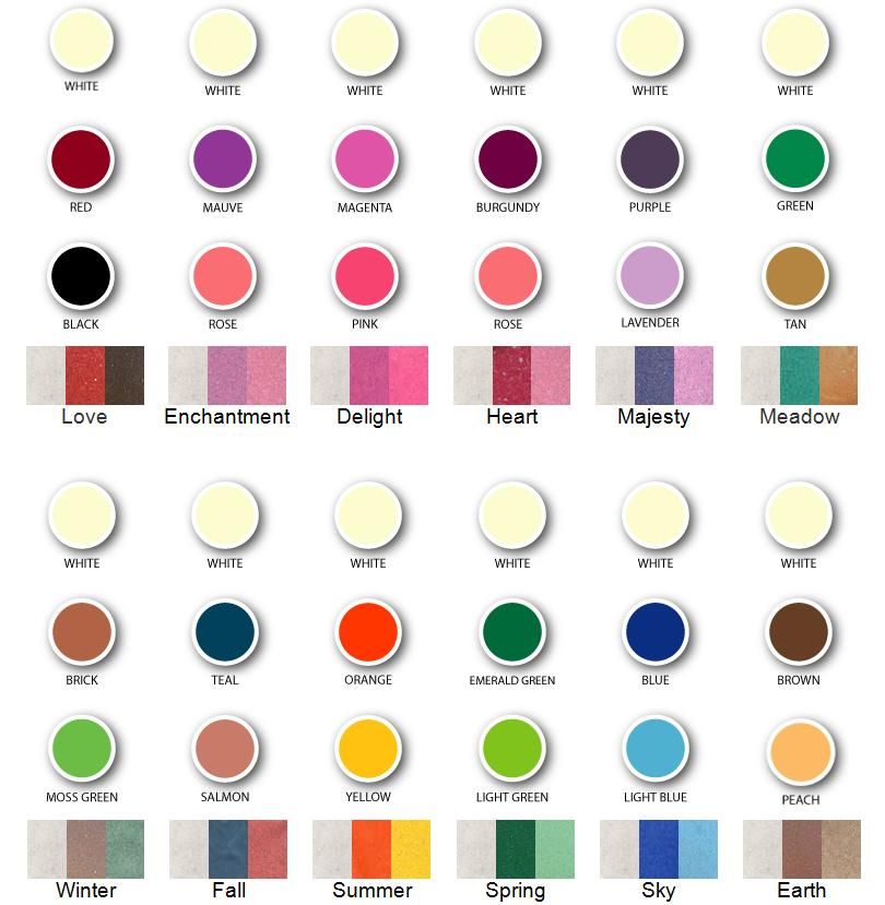 - Светло-коричневый: бледно-желтый, кремово-белый, синий, зеленый, пурпурный, красный.