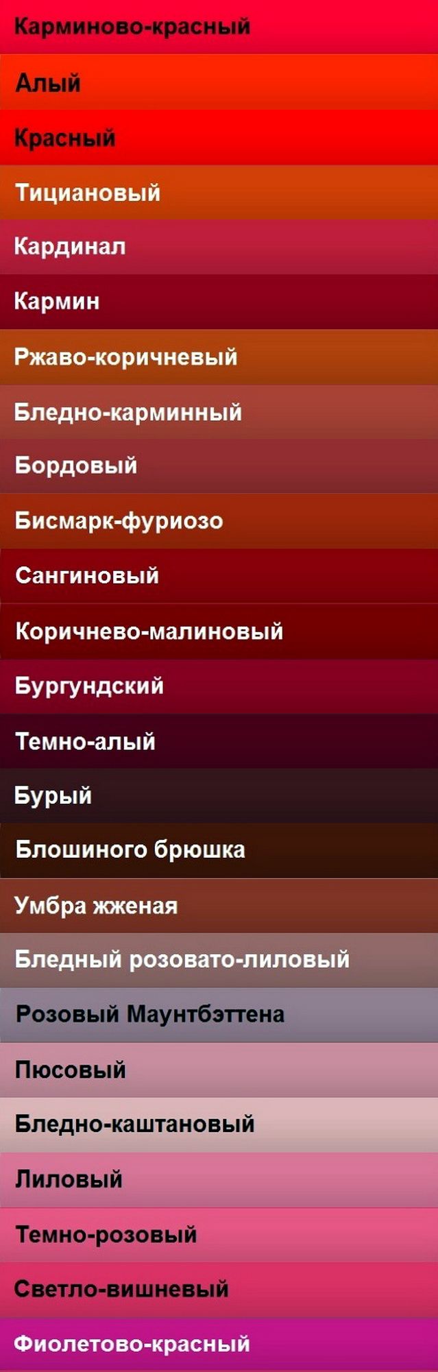 красно-коричневый, оттенки розового, оттенки теплого коричневого, оттенки цвета нюд, пастельный розовый, пыльный розовый, пыльный фиолетовый, рыже-коричневый, теплый розовый, фиолетовый, цвет инжира.