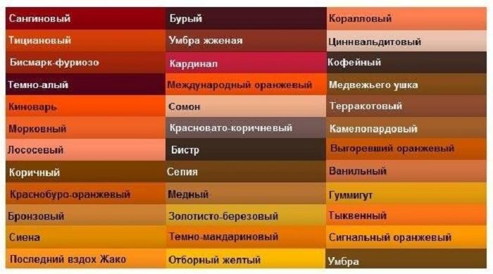 бежевый, грязный белый, коричневый, красно-коричневый, оранжевый, осенние тона, оттенки коричневого, оттенки серого, подбор цвета, почти-черный, светло серый, светло-коричневый, серебряный, серо-бежевый, серый, серый цвет, темно серый, цвет кофе, цвет листьев, яркий оранжевый.