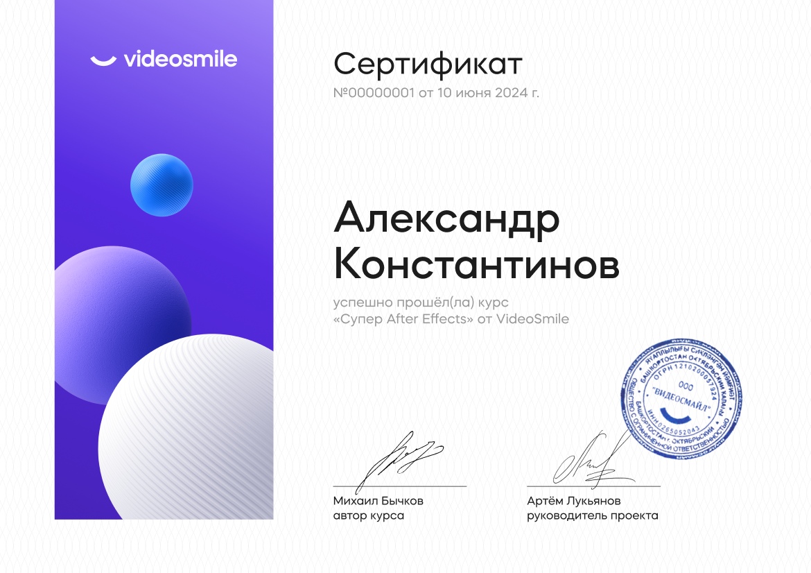 В результате курса студенты освоят весь пакет программы Adobe After Effects и ее возможности.