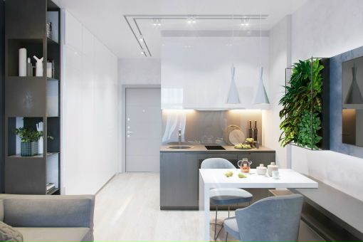 • Ремонт должен быть максимально компактным и «умным», а не просто красивая маленькая квартирка. Иначе – не будет ни пространства, ни удобств; следует учесть многие аспекты: от того, где хранить верхнюю одежду, до того, где сушить белье.