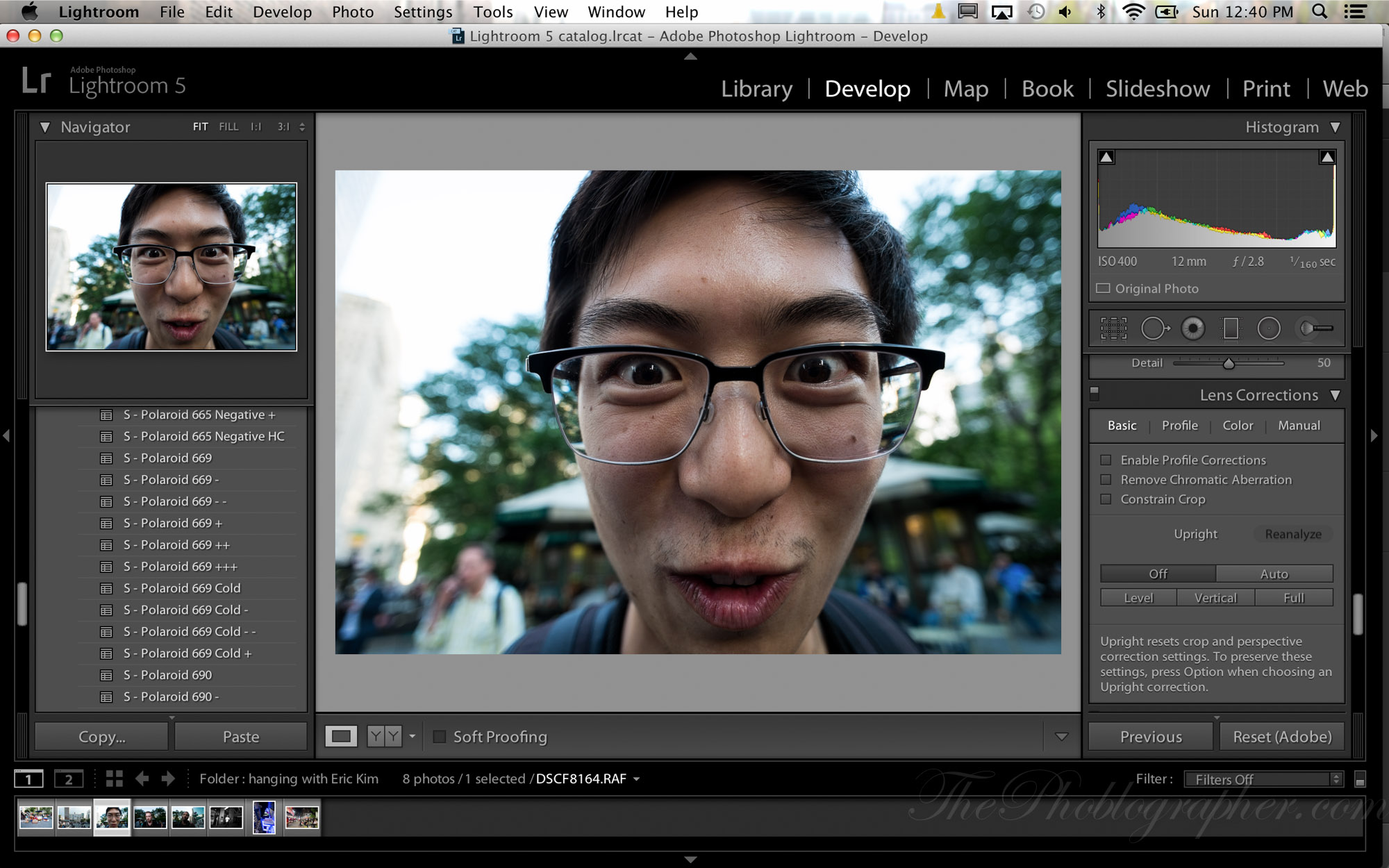Lightroom содержит базу наиболее распространенных фотокамер и объективов, может распознать какой аппаратурой сделан конкретный снимок и автоматически сделать небольшие корректировки изображения с учетом особенностей использованной техники, например уменьшить дисторсию объектива или убрать виньетирование. Для этого достаточно поставить галочку Enable Profile Corrections в разделе Lens Corrections.