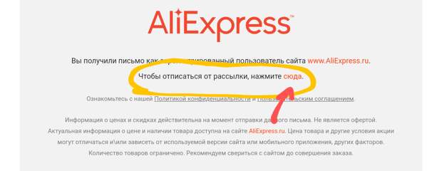 1) Заходим в свою электронную почту и открываем рекламное письмо от какого-то конкретного магазина и пролистываем такое письмо до самого конца, нас интересует подобная строчка как на картинке ниже ⤵️