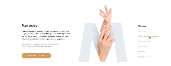 5 9 страница использует четыре части этого веб-сайта, чтобы показать его целевую страницу. Все они связаны отличными переходами.