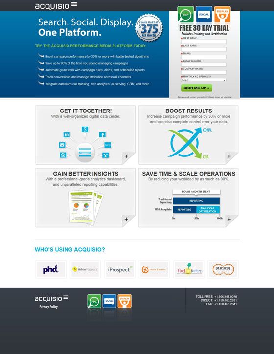 Целевые страницы тщательно разработаны, чтобы ответить на эти вопросы как можно быстрее и эффективнее. Часто это первое, что увидят заинтересованные клиенты, зайдя на ваш сайт. Это ваша лучшая возможность сделать короткую и привлекательную «продажу» сомневающимся клиентам. Самое главное, у них есть «призыв к действию» (CTA), который побуждает посетителей зарегистрироваться или начать работу или даже купить сейчас .