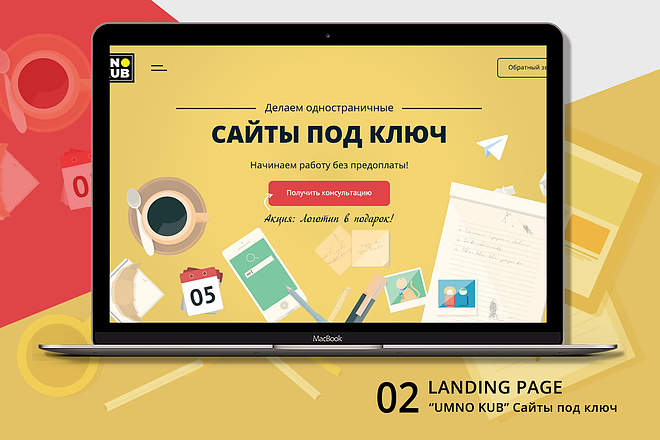 Компоновка лендинга представляет собой минимальное количество экранов для прокрутки, что позволило сделать одностраничник «легким» и быстро загружаемым. Для лендинга, в общей стилистике, разработаны формы обратной связи для отправки сообщений в режиме онлайн.