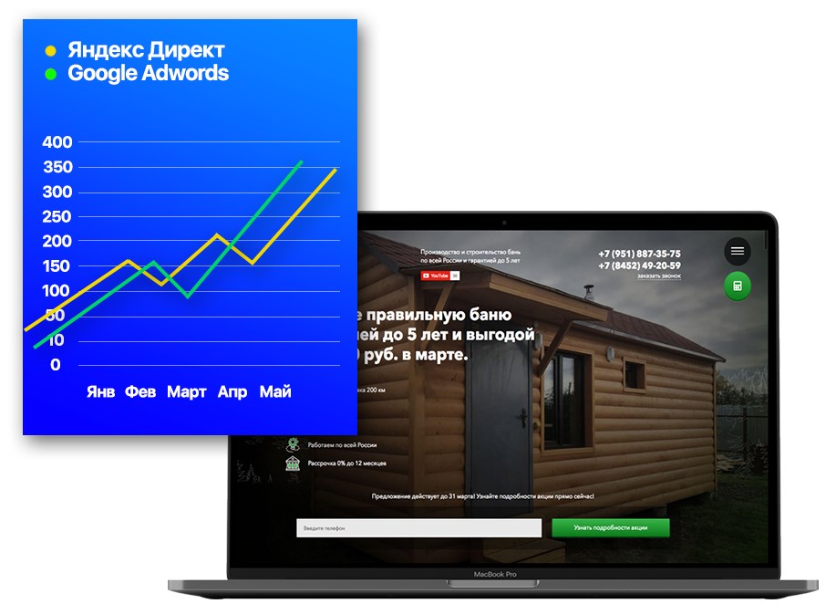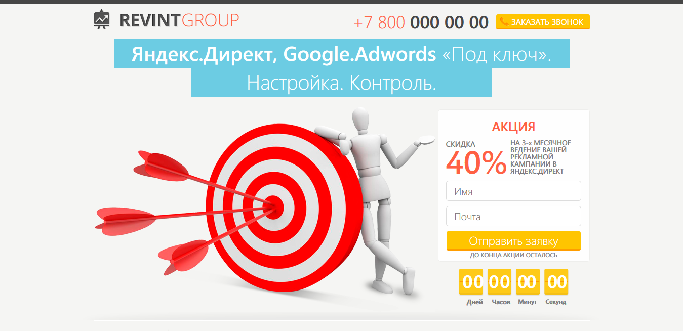 Если создавать успешный лендинг, то лучше составить спецпредложение, содержащее наличие скидки или акции, например, при заказе SEO раскрутки сайта, цена на настройку в Яндекс Директ будет снижена в на определённый процент или же будет бесплатна.