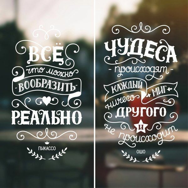 к. слишком маленькое расстояние делает предложение нечитабельным, а слишком большое – разъединяет слова так, словно все написанное – совершенно разные мысли. В леттеринге существует понятие «воздуха», когда из пространства черной меловой доски вокруг композиции вы будто бы «пропускаете воздух» во внутрь фигуры, которую вы только что создали линиями букв.