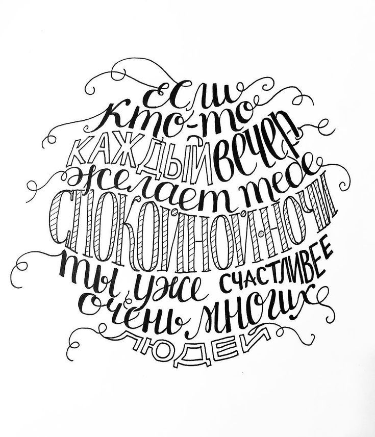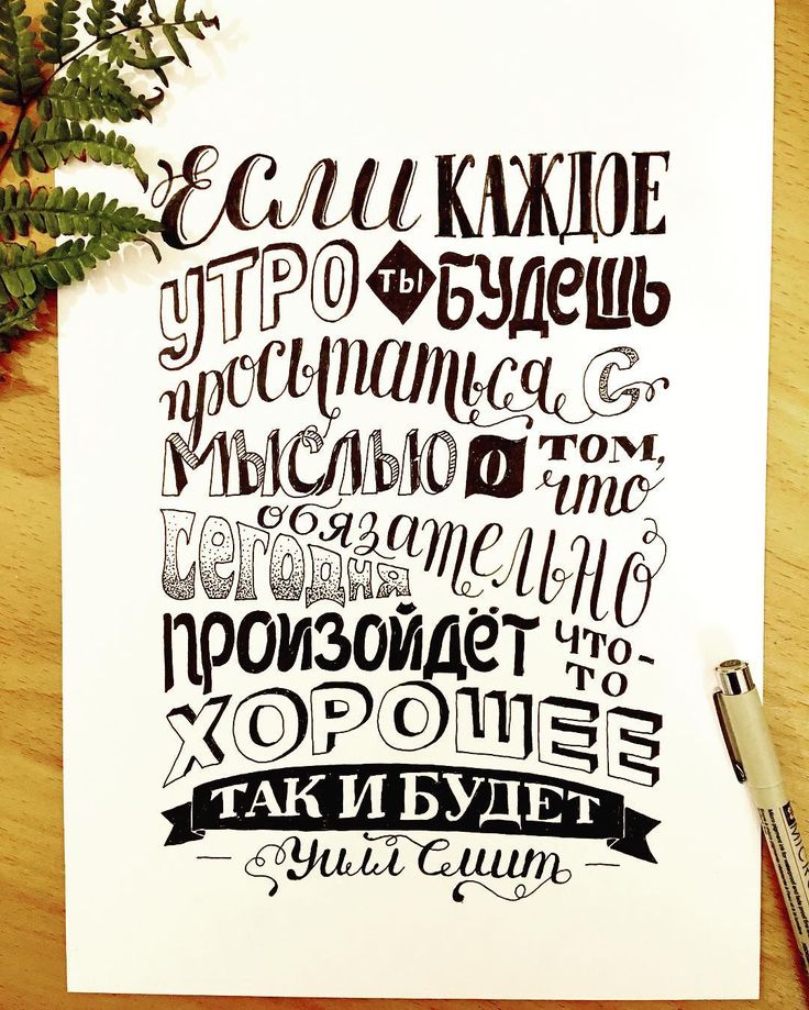 Поэтому подробно о том, как начать писать красиво, я рассказать не могу — сама не знаю. Я просто сажусь и пишу. Иногда делаю карандашный набросок (особенно, если нужно впихнуть текст в форму), иногда прямо сразу линером или пенбрашем.