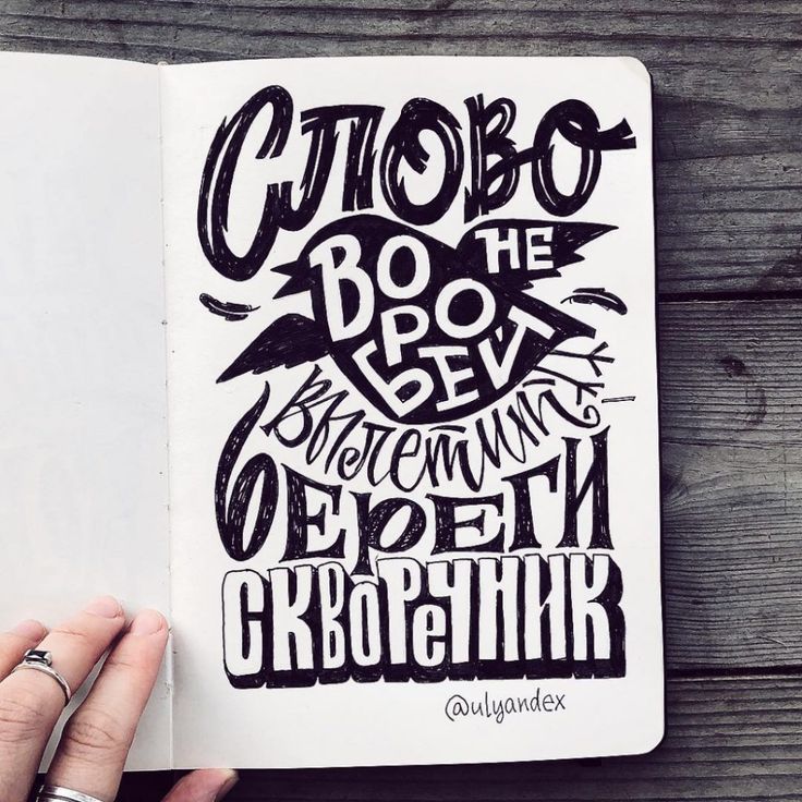 И вот в моем случае все эти картинки с цитататами — это леттеринг. Я пишу фразы в блокноте от руки линером, а если хочу «запихнуть» их в какую-то форму — делаю это сразу, тоже в блокноте.